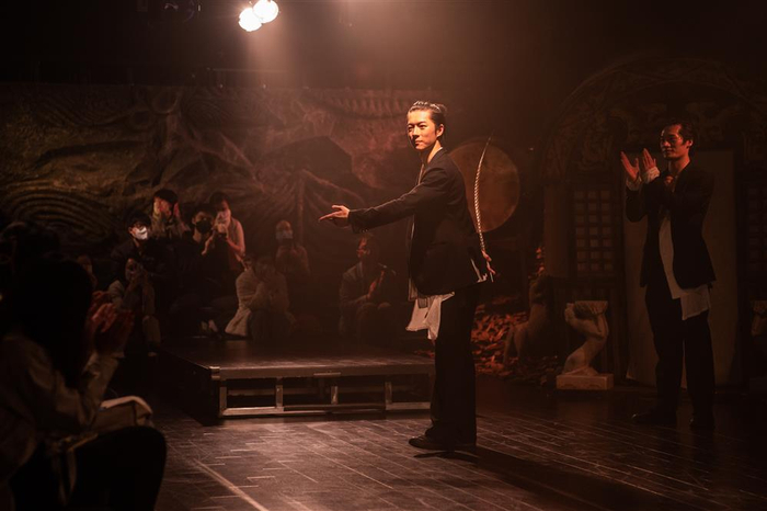 演了100多场《寅时说》,上官俊雄渐渐累积起“粉丝”和“流量”。谢幕之后,总有观众在亚洲大厦一楼大厅等着他,期待跟他面对面交流。亚洲大厦给了这群年轻的演员被看见的机会,也给了他们重重压力。在这里,每日的“卡司表”直接关联票房。今天的表现不好,很可能就会影响下一场演出的上座率。“你只能为每一场演出全力以赴。”上官俊雄说。亚洲大厦刮起中国风编创《寅时说》之前,耿子博在亚洲大厦看过几部作品,产生了一个疑惑:这样一个地标性场所,为何缺少讲中国故事的原创剧目?他下定决心,要做一部“中国风”的作品。耿子博1990年出生在河南周口,5岁开始学习武术,学了6年,中国戏曲学院附中到河南来招学舞蹈的孩子,有人推荐了他,“有一个打武术的男孩还挺灵的。”11岁的耿子博赴京赶考,考场上,身材瘦小的他被淹没在一群从小学芭蕾,有着标准舞蹈身材的学生中间,感到有些自卑。“我当时穿了一身很夸张的武术行头,老师说你会什么?我说我会打拳,就来了一套,还会翻跟头,就‘咔咔’一顿猛翻。然后就听考官说,可以了,小伙子,你被录取了。”
