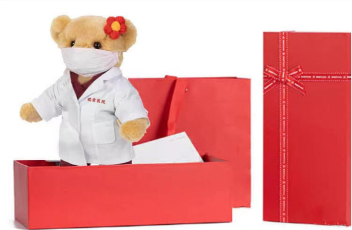 小熊玩偶、卫衣等其实并非本周新品,2022年春夏,陈尔真带队奔走各个方舱医院时,身着印有瑞金英文名称缩写的红色卫衣的照片,就曾在社交媒体中广泛流传。“一下子就‘爆’了,很多职工甚至院外的朋友询问如何买到。”党委办公室副主任丁芸介绍,去年职代会上,“希望设立医院文创产品专卖店”的建议呼声很大,但如何能让其符合医院医疗属性、人文特点及文化内涵?