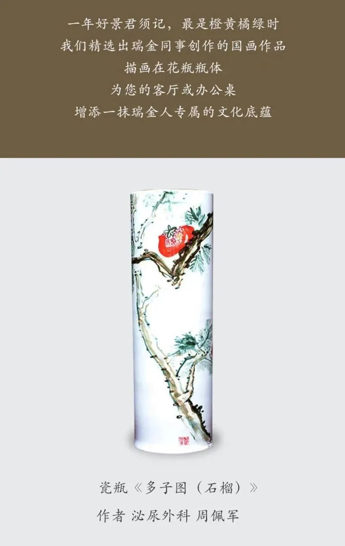 “瑞·才艺”系列出自瑞金医护之手,全场最高价之一的国风瓷瓶《多子图(石榴)》是泌尿外科主任医师周佩军的佳作,他的另一身份是瑞金医院书画社社长。在位于嘉定区的秦古美术馆,这群医护们利用闲暇创作、交流,本次遴选了5件代表作首期上线,已经售出2件。“我倒是还没关心过购买者是谁,当时作为社团活动的成果,已经属于医院了。”周佩军笑道,“我们的社团有200余名成员,虽然书画可能有比较高的门槛,但从书写到书法,从交流到鉴赏,给了我们亲近传统文化的渠道,现在能形成良性循环的慈善方式,更是喜闻乐见的。”