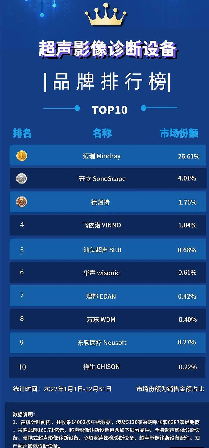 国产榜单|2022年超声影像设备排行榜,迈瑞稳居榜首,便携式占比超5成
