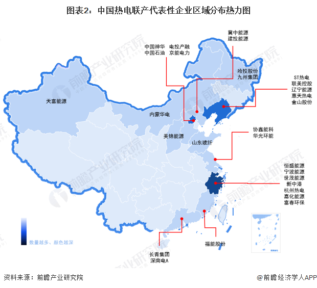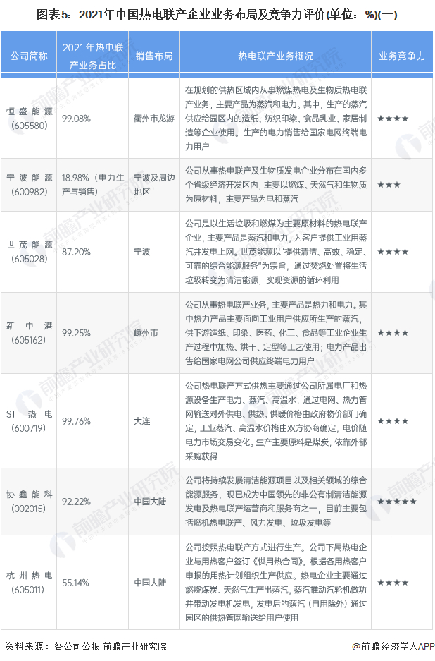热电联产行业的上市公司中,大多数公司均布局在境内及公司所在地,恒盛能源、新中港、ST热电、协鑫能科等电力企业热电联产的相关业务占比较高。此外,大部分企业针对小部分特定区域或市进行供电及供热,受电力及蒸汽产量有限及较远传输将造成能量损耗影响,较少企业向其它地区供给。