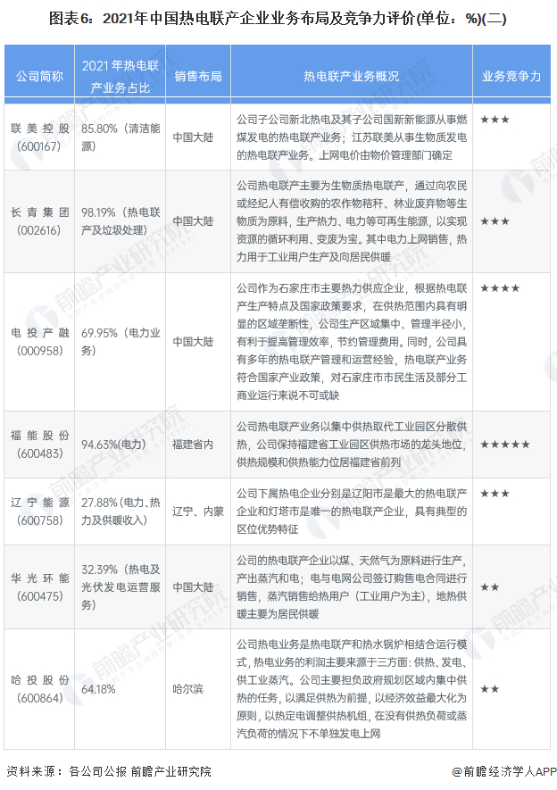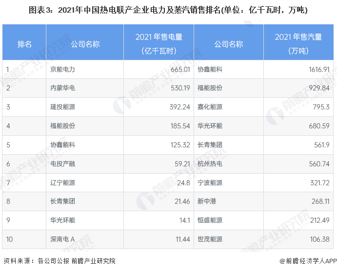 本文核心数据:企业排名;企业售电/汽量;热电联产业务占比