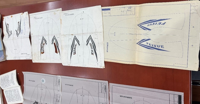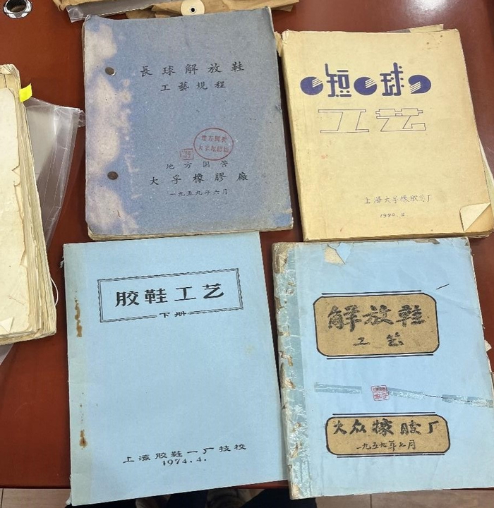 “一开始的飞跃鞋是全白色的,当时和解放鞋一样,是国家的战备物资。到了1983年的时候,技术科的张学敬设计了带有双勾图标的飞跃鞋,结果一炮打响,很快就风靡全国。有幸的是,我们在“大孚飞跃”找到了当年的设计图纸,从中可以清楚的看到飞跃鞋的设计过程。”原大孚橡胶总厂主任胡强介绍道。