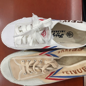 “飞跃鞋”是上海的经典国货品牌,诞生于上海大孚橡胶总厂。白帆布鞋面、黄色硫化橡胶底、红蓝双勾和FEIYUE拼音构成的装潢,是人们记忆中“飞跃鞋”的经典元素。
