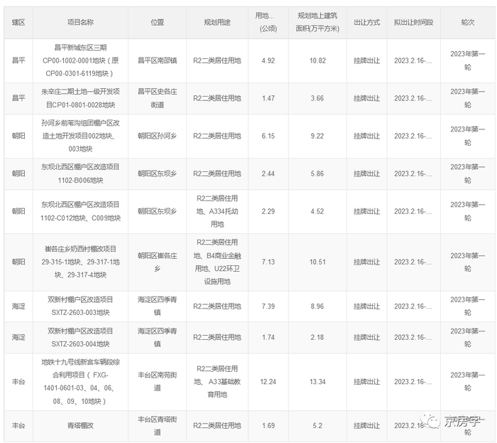 北京公布首批23个拟供地项目清单!朱辛庄等2个地块正式入市!