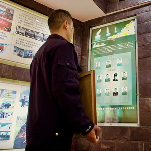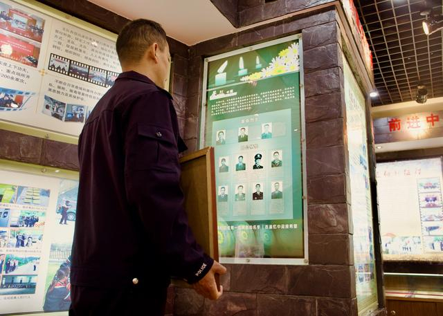 把奖牌挂至荣誉墙上,安晓华再次驻足英烈墙前,标标准准地向英烈敬礼。