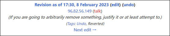 由于维基百科一直以面向全体网民开放编辑权限著称,我们目前没办法确定删改这些内容的人都是谁,也无法考证他们的动机。