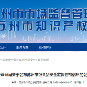 苏州市市场监督管理局关于苏州市级食品安全监督抽检信息的公告(2023年第4期)