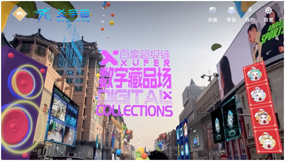 爻宇宙是一站式虚实共生平台,可以为城市、街区、景区、商圈等打造AR+VR全端、线上线下互通的地球级开放世界。爻宇宙在元宇宙中的城市街区、景区装扮百度超级链的部分数字藏品,与现实世界进行交互。