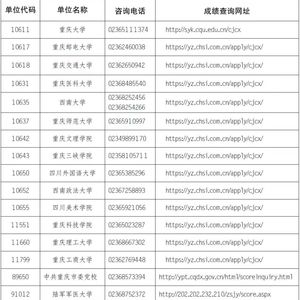 各招生单位成绩查询网址。重庆市教育考试院 供图