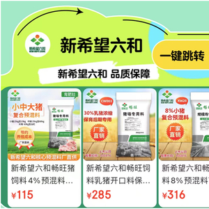 为了给广大养殖户提供安心放心的饲料产品,此次首届京东饲料囤货节,京东农用品通过与行业头部品牌直接合作,精选优质饲料产品,确保产品质量安心无忧。以新希望猪预混料为例,作为20年预混料专业生产厂,新希望借助数字化、信息化配料系统充分提高饲料品质,采用净能低蛋白体系,平衡多种氨基酸,并甄选高品质诱食剂,不仅能够提高猪体的消化吸收率,还对防止小猪腹泻有着极大作用,保证预混料的饲喂效果,减少猪的患病概率,保障猪的饮食营养均衡。除小中大猪复合预混料外,还有产蛋期蛋鸡预混料、牛羊鹅复合预混料等多种饲料,充分满足养殖户的不同使用需求,帮助农户提高养殖效率。