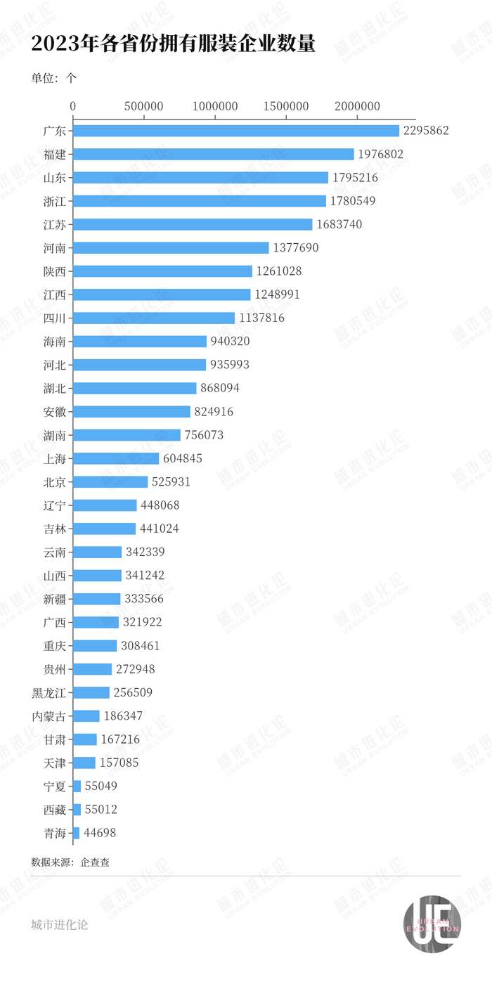 从更大的范围来看,根据企查查提供的数据,全国现有服装相关企业2374万家,其中河南为137.8万家,仅次于广东、福建、山东、浙江、江苏。这也逐渐奠定起河南在纺织服装行业前六强的“江湖地位”。