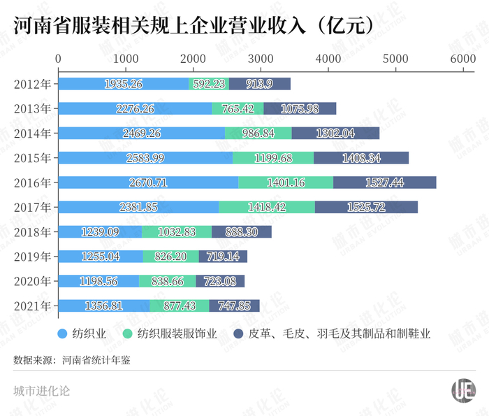 统计年鉴显示,2020年河南服装相关规上企业1782家,较2015年减少313家。营收和利润总额分别为2760亿元、217亿元,均缩水50%左右。虽然这与全国纺织服装服饰业的发展轨迹大体一致,但亦使得河南服装产业的结构性问题加速暴露。