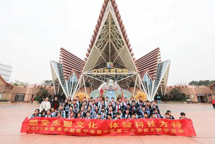 2月17日,南宁方特东盟神画(以下简称“南宁方特”)迎来了2023年开春首批研学团队——来自南宁市邕宁区第二小学的1800名学生。同学们参观体验了南宁方特11个东南亚主题馆,结合老师的讲解深入了解南宁与东盟之间的密切联系,在东南亚文化课堂里拓展视野、增长见识,探究东南亚的历史文化精髓,在体验过程中加深对民俗、科技、文化等方面知识的理解。