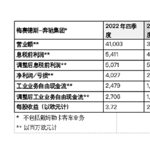 核心市场销量的增长助力梅赛德斯-奔驰2022财年业绩实现稳健增长。