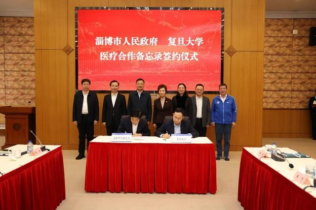 会议最后,双方签署医疗合作备忘录,山东复旦研究院与淄博市签署战略合作协议。