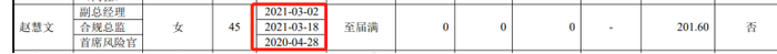 赵慧文担任公司合规总监时间不长,也仅有不到两年时间。