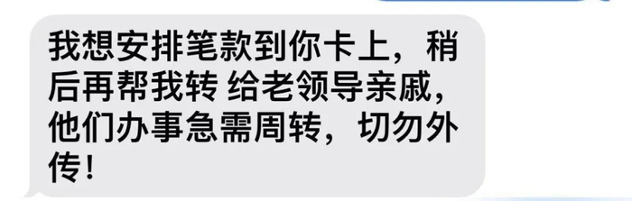 近日,市通信管理局从多渠道了解到,有诈骗分子假冒领导,通过短信及iMessage消息实施诈骗。诈骗分子一般会谎称自己不方便出面,编造各种理由要求被害人代为转账汇款。同时,诈骗分子还会伪造转账截图给被害人,让被害人相信钱已经打到自己的账户,再让被害人作为中间人帮忙转账给其所谓的“领导”“亲戚”。