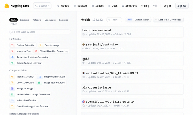 就像存放Git repo的地方叫Github,在 Hugging Face Hub,可以找到上万个已经训练好的模型,用户可以在 Hugging Face上托管和共享ML模型、数据集,也可以自己搭建部署新的模型。