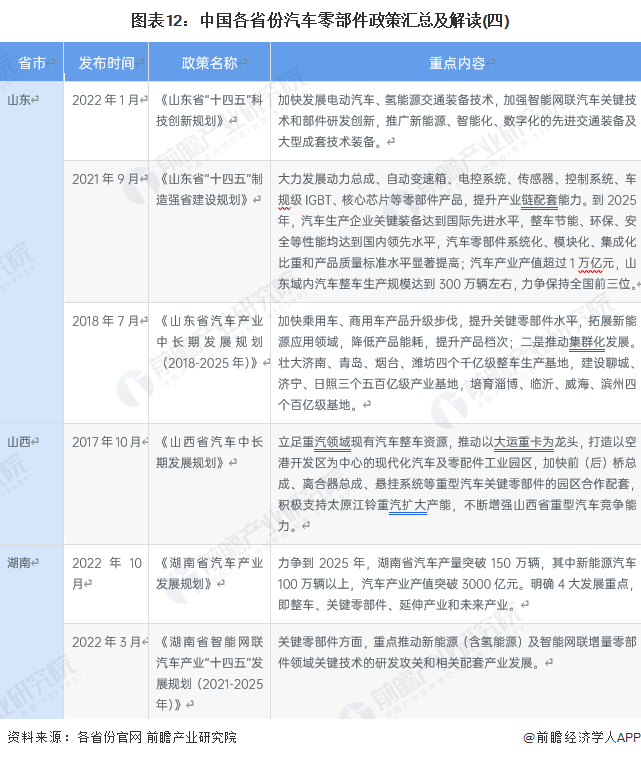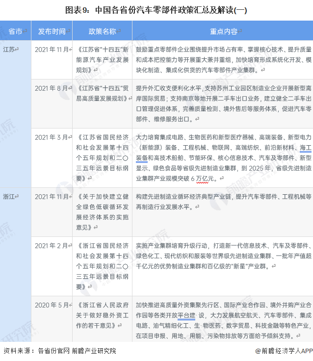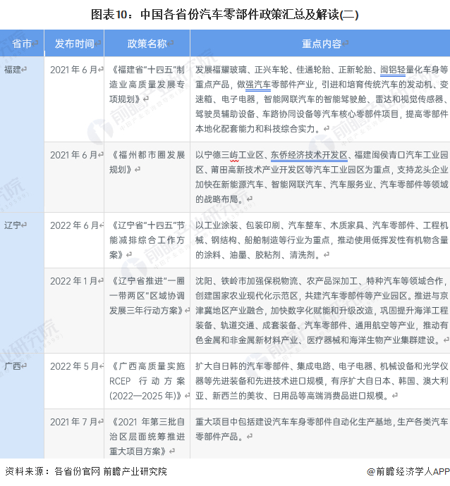 ——31省市汽车零部件行业政策汇总