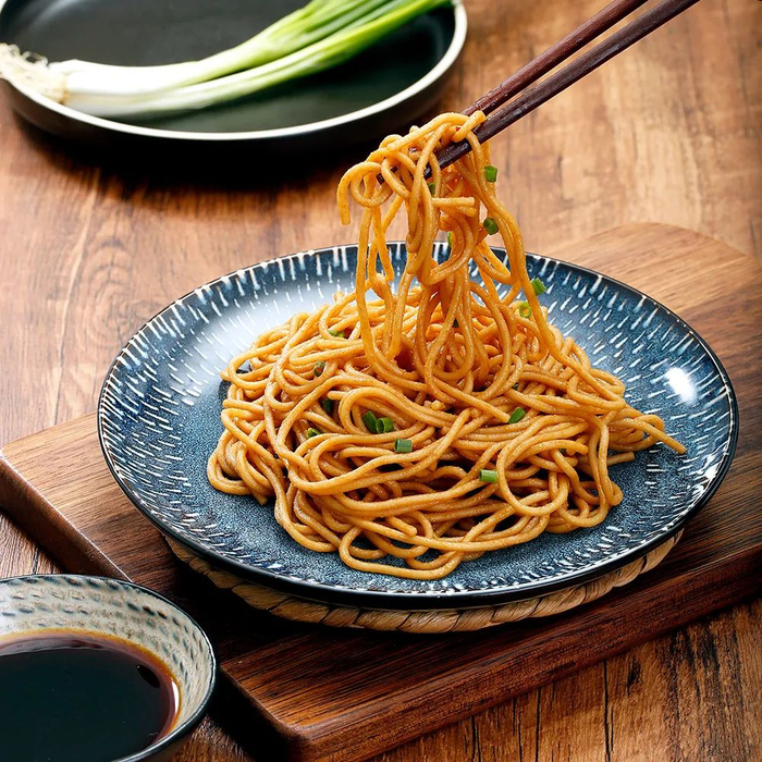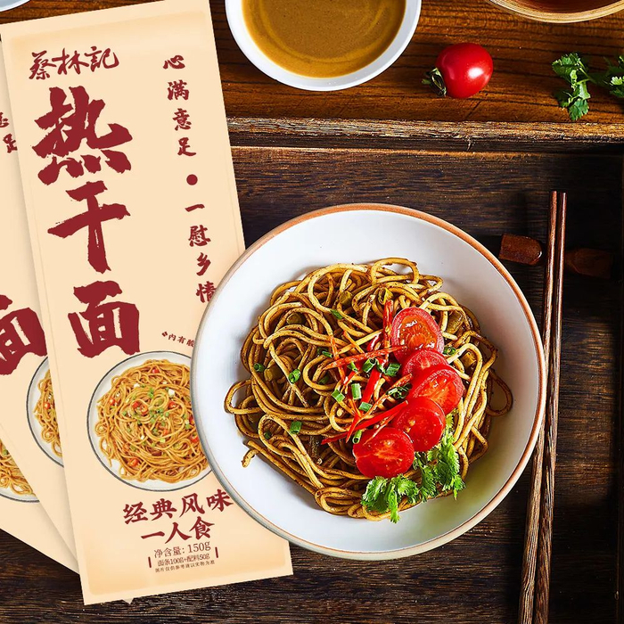 蔡林记热干面采用筋道的碱水面搭配多种辅料