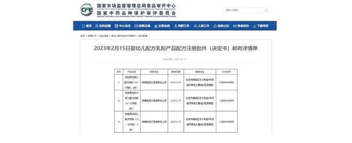 2月15日,最新一批“婴幼儿配方奶粉注册批件(决定书)”公布,公告显示,北玮至护、光明优幼、雅慧婴儿等50款配方奶粉通过新国标注册。
