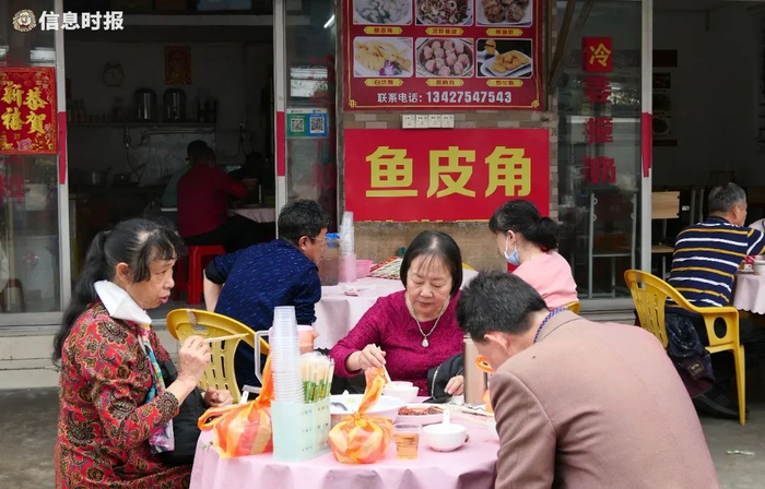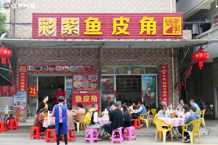 彩紫鱼皮角在紫坭开业至今15年,老板正是“姐妹鱼皮角”大家姐梁姨的儿子。平日里,梁姨一边照看姐妹鱼皮角店的生意,一边抽空过来儿子的店帮忙。梁姨笑说:“之前我们开的姐妹饭店,鱼皮角只是其中一道菜品,很受食客欢迎。2019年饭店拆了,我们五姐妹才以鱼皮角、酿鲮鱼和捞鱼皮为主角,开了这家姐妹鱼皮角。”