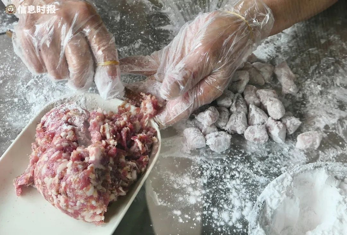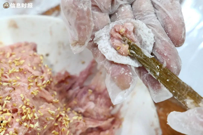如今,鱼皮角的肉馅大多是猪肉馅。“旧时,鱼皮角的肉馅里会加上鸭膶或者腊味。后来大家追求健康饮食,在鱼皮角里放鸭膶的做法已经不常见了。只有在过年时,我才会做一批加入腊味的鱼皮角,每次很快会被熟客买光,由此可见这种口味还是有很多人喜欢的。”为了增添鱼皮角的香味,宜姐会在肉馅中加入白芝麻,口感更丰富。