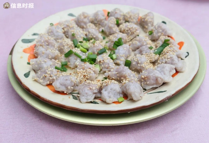 宜姐向记者介绍鱼皮角的制作过程时强调,鱼皮的制作至关重要。说是“鱼皮”,其实是指用鱼肉做成的“饺子皮”。“鲮鱼要选用新鲜的,将鱼脊肉用瓷勺子刮下来,放入大盆中用力反复‘挞’(摔打),加入少许油和盐,‘挞’到鱼青起胶,盆中没有任何残余鱼蓉才可以。”宜姐说。