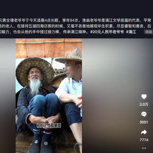 被称为“20元人民币老爷爷”的漓江渔翁离世