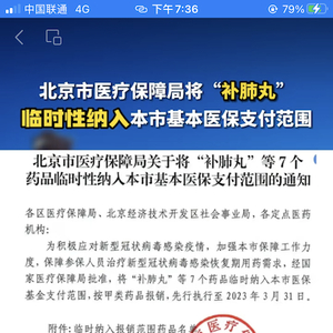据同仁堂日前公告,为保障参保人员治疗新型冠状病毒感染恢复期用药需求,经国家医疗保障局批准,近日北京市医疗保障局将包括补肺丸、牛黄清心丸等在内的7个药品临时性纳入本市基本医保支付范围,按甲类药品报销,先执行至2023年3月31日。其中,牛黄清心丸正是同仁堂的主要品种之一。