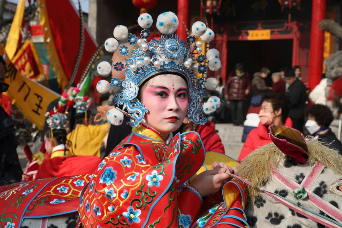 作为豫北地区正月里的最后一个庙会,每年农历正月二十七至二十九,滑县都要举行盛大的庙会。在这三天,争奇斗艳的社火表演永远是庙会的主角,男女演员盛装上阵,从脸谱到服装,无不体现了浓郁的传统文化色彩。