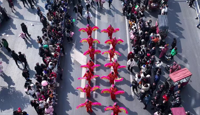 人山人海,锣鼓喧天,各表演队伍轮番登场,使出浑身解数展现才艺。