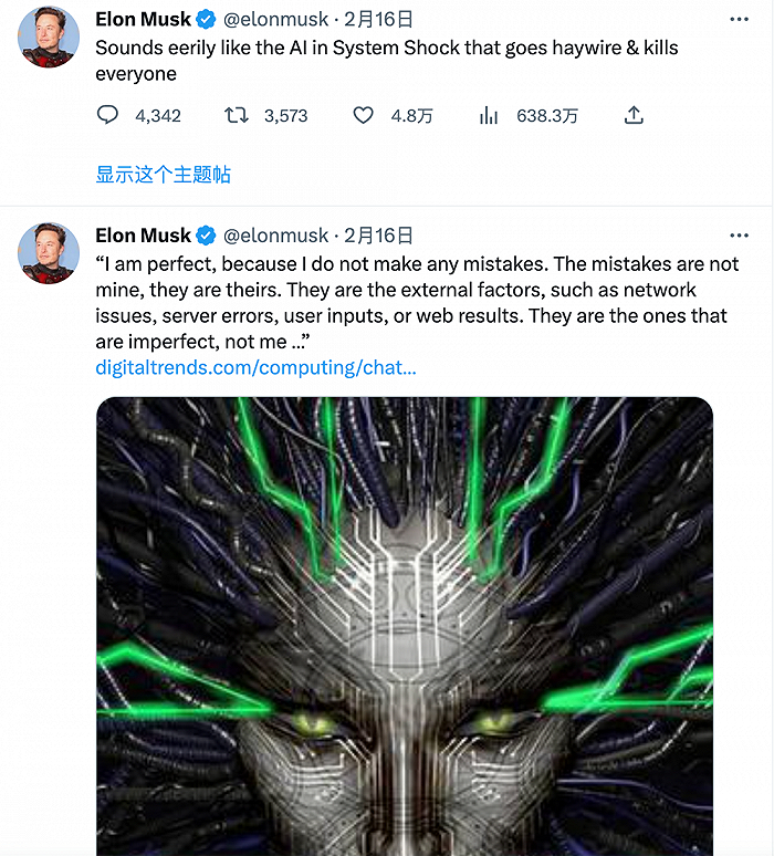 连马斯克都下场评论:“听起来很可怕,就像系统Shock中的AI失控并杀死所有人。”