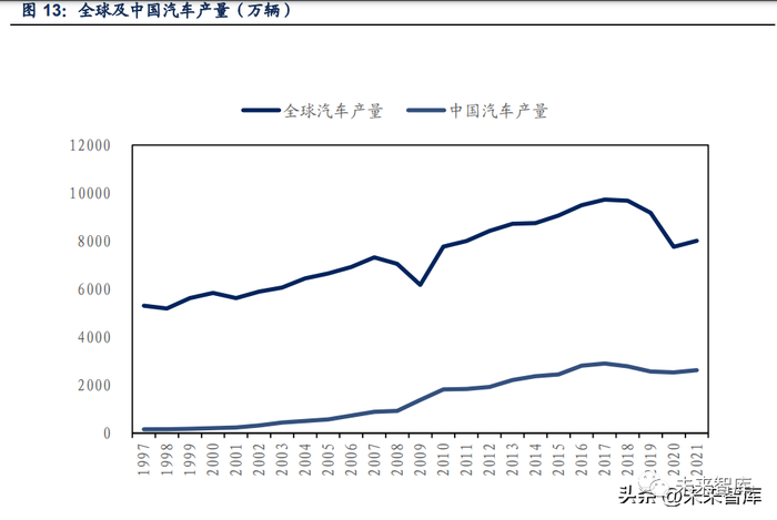 在汽车领域,POE 需求有望借助汽车产销恢复和轻量化趋势而得到恢复和发展。中国汽车 行业轻量化趋势越来越明显,POE 产品在该领域将有广阔的发展前景。据新思界网,POE 应 用至汽车零部件的制造,可以提升相关部件的性能、降低重量,同时还可以节约成本。中 国汽车制造、塑料制造的生产体量较大,但对 POE 应用率仍然较低。目前国外汽车保险杠 领域的共混改性已大部分采用 POE 弹性体,而国内仅有 20%左右的保险杠材料采用 POE 弹 性体。从全球及中国汽车产量来看,芯片问题制约着近几年汽车产业的发展。汽车芯片短缺出现 的原因包括,(1)车企因疫情减少订单后,汽车芯片生产企业将产能挪作他用;(2)车用 半导体大多采用 8 英寸晶圆制造,而近些年主要半导体代工厂着重发力 12 英寸晶圆;(3) 消费电子芯片需求大幅上涨,挤压汽车芯片空间;(4)国际政治、贸易摩擦。国家对芯片 问题越来越重视,“十四五”国家专项规划中纳入 5G、集成电路等领域,随着政策和产业 上的不断攻坚克难,未来芯片短缺问题解决后,汽车产销有望得到恢复,POE 在汽车领域 的需求也有望得到恢复和提升。