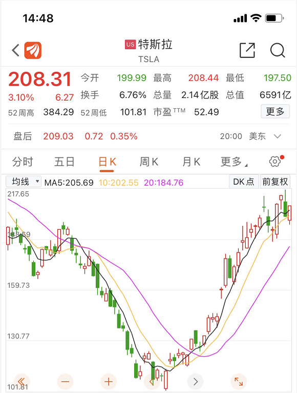 今年1月国产车型大幅降价以来,特斯拉股价反而大涨,年内涨幅已经接近70%。截至美东时间2月17日收盘,特斯拉股价为每股208.31美元,市值达6591亿美元。