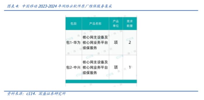 C114讯,从中国移动官网获悉,中国移动日前发布公告称,启动2023-2024年网络云软件原厂维保服务单一来源采购,华为、中兴两家包揽。
