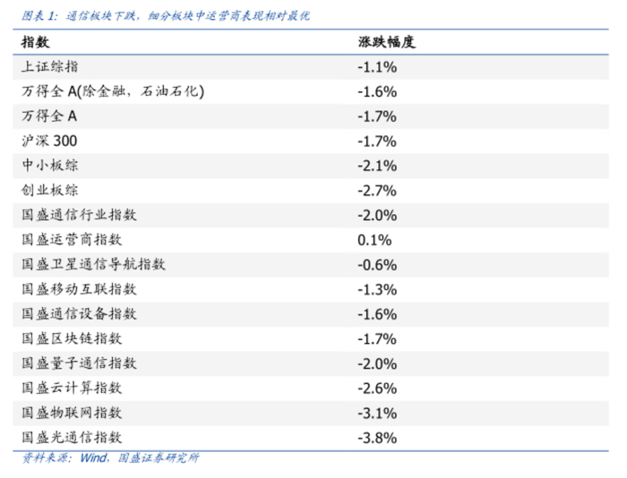 2. 行情回顾:通信板块表现下跌,运营商表现最佳