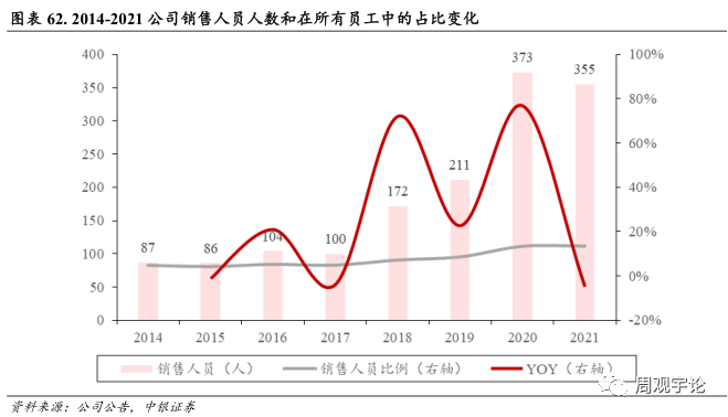 截至 2021 年末, 内销人数目前 355 人。公司改革销售渠道成立业务一部、 业务二部, 同子公司维力健益和维力健益一同按照不同的产品线分线营销, 使得分销更加专业化。