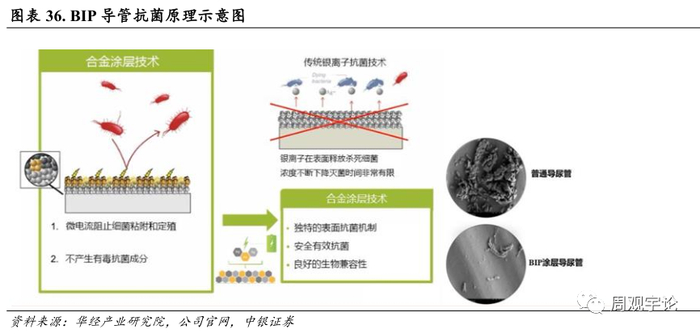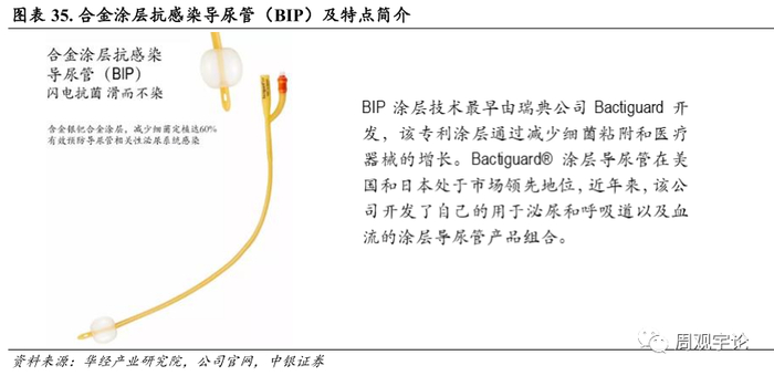 2018 年, 维力医疗引进全球抗菌涂层技术领导者——瑞典 Bactiguard AB 公司的抗菌涂层技术, 获得了 合金涂层抗感染导尿管(BIP) 中国独家代理权。并获得了 BIP 涂层技术在中国的技术合作授权(有望在公司的其他产品上同样使用 BIP 涂层技术) 。其独特的技术领先优势、 全球知名品牌及大量的临床研究数据基础, 将为维力医疗开辟感染控制领域市场奠定良好基础。BIP 导尿管在美国和欧洲已经得到广泛应用。2022 年 3 月 BIP 涂层导尿管的三类医疗器械注册证延续获批。