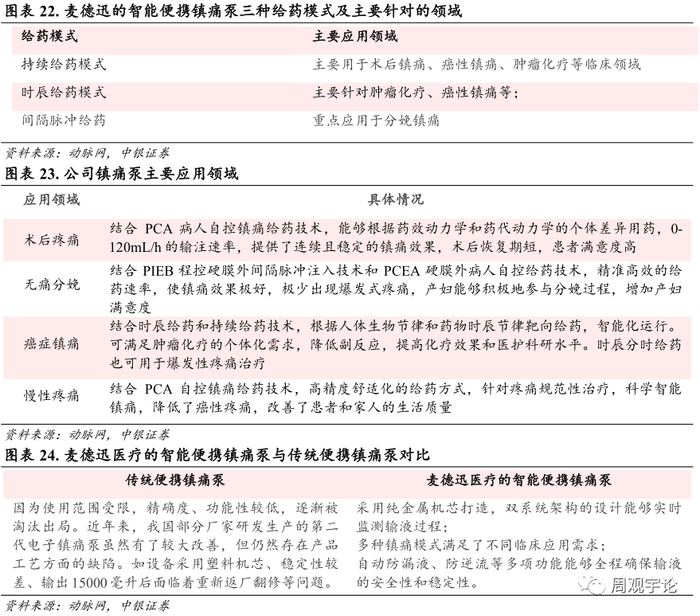 2021 年公司完成对苏州麦德迅的收购, 麦德迅成为公司的控股子公司。麦德逊自 2014 年创立开始就进入疼痛输注领域并开始在智能便携镇痛泵上的探索。麦德迅智能便携镇痛泵为公司的明星产品。该镇痛泵属于三类医疗器械, 处于医疗器械里面最高级的监管模式。麦德迅医疗目前已与国内多家著名医疗机构的资深专家达成了合作。除此之外, 公司依托于东南大学苏州医疗器械研究院雄厚的学科基础和技术成果, 已建设麻醉科、 ICU 领域的创新医疗器械技术产业化平台, 产品覆盖了疼痛管理线、 输注管理线、 可视化气道管理线等三大领域, 可广泛应用于麻醉科、 ICU、 儿科、 急诊、肿瘤科等科室。