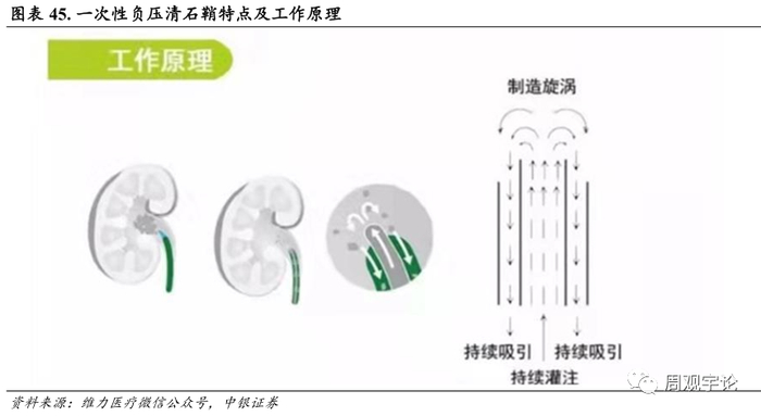 公司在泌尿外科领域, 推出了负压清石鞘创新产品, 产品采用负压取石方式, 提高了清石效率及患者安全性。传统产品的清石鞘是直型, 公司的负压清石鞘创新产品采用 Y 型, 可以通过负压原理把碎掉的结石和血雾吸出。同时, 负压清石鞘可以同时灌注与负压吸引, 借此平衡人体内部的压力,降低手术的风险。持续的灌注和负压吸引又可以使得手术视野更为清晰, 提高手术的效率。