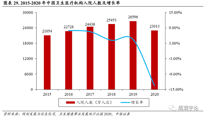 据《卫生健康事业发展统计公报 2020》 数据, 2019 年我国住院人数从 2015 年的 2.11 亿人增至 2.66亿人, 复合增长率为 6.02%, 2020 年由于疫情影响, 住院人数、 实际占用病床天数均出现不同程度下滑, 后疫情时期将逐步恢复正常, 叠加老龄化加速影响, 导尿管作为基础临床医疗产品未来需求空间大。
