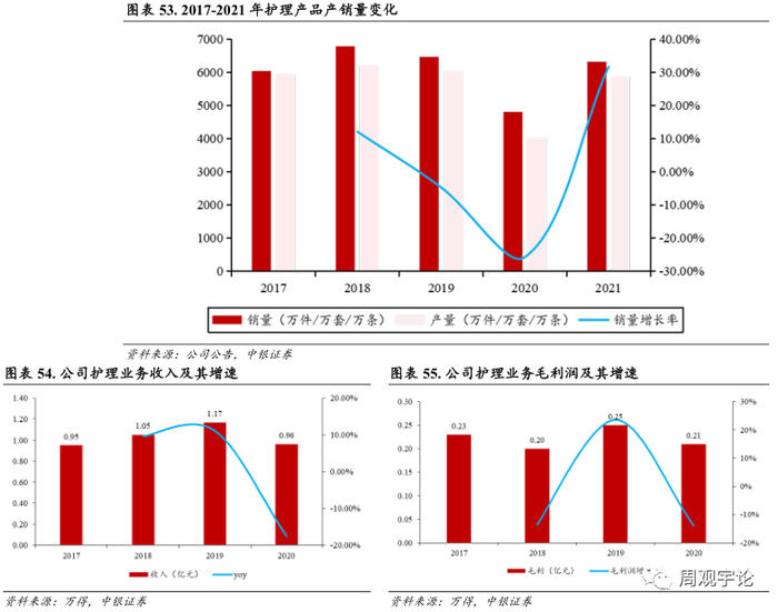 公司护理业务线产销量变化及业绩情况