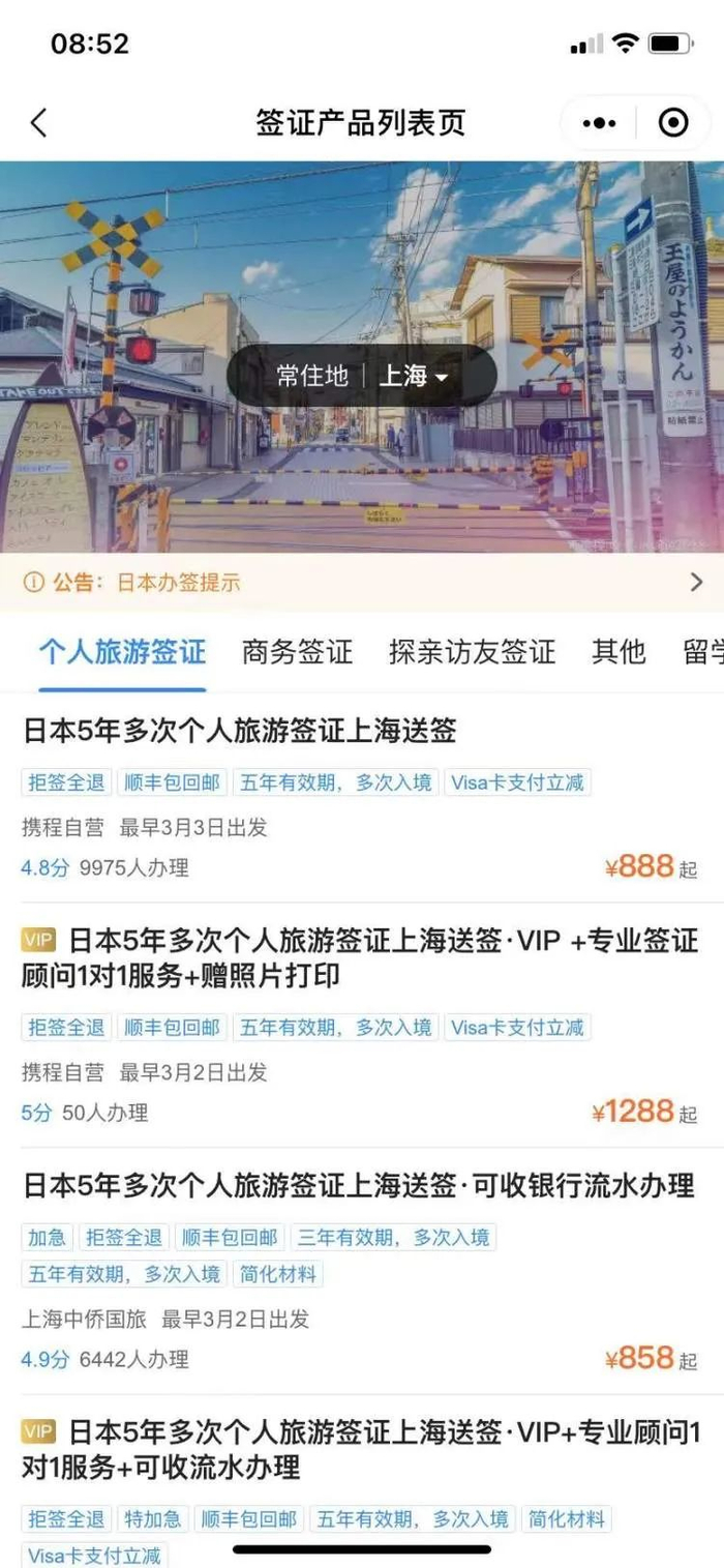 网上有传言上海恢复日本单次签了?对此,携程的工作人员告诉记者:“日本领馆各类型签证都已开放,但由于三年及单次需要旅行社安排机酒,而文旅部公布的第一批出境参团名单中没有包含日本,故旅行社暂时只能办理五年多次签。”当前,携程平台上日本五年多次签的服务费用大概在800至1300元左右。