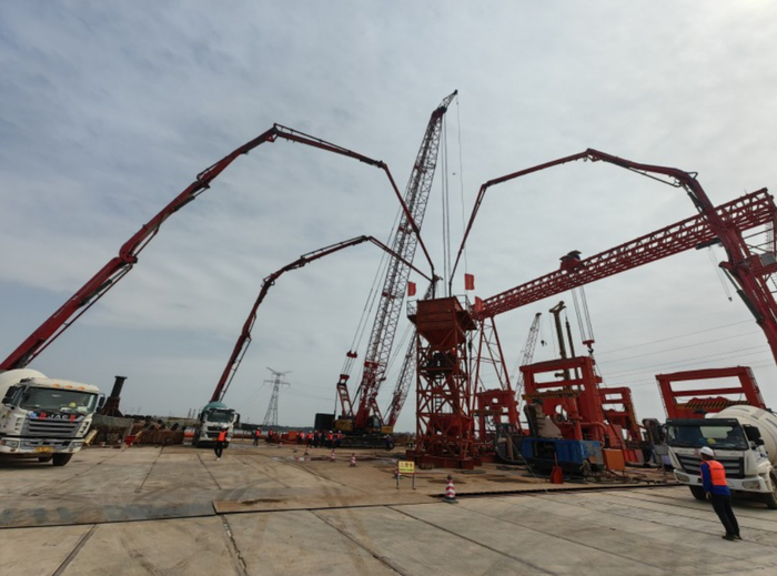 2月16日,经过10个小时的连续奋战,深江铁路8标洪奇沥水道公铁大桥主塔墩首根水上4米超大直径桩基顺利浇筑完成,标志着大桥水上主墩全面进入桩基施工阶段。