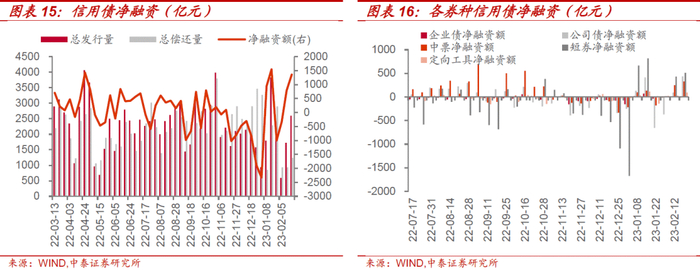 具体来看,企业债、公司债、中期票据、短期融资券及定向工具净融资额分别为-11.60 亿元、437.35亿元、329.29亿元、511.30亿元和89.25亿元,除企业债,其他券种净融资额较上周均有不同程度增长。
