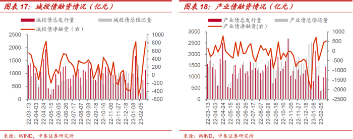 本周城投债净融资为832.14亿元,同比增长139.75%;本周产业债净融资额为523.45亿元,同比增长17.58%。