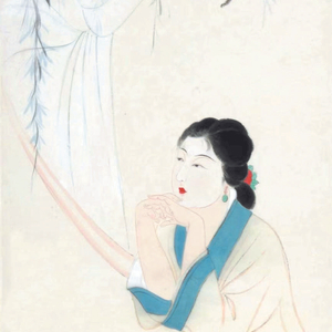 张大千《翠楼远望仕女图》(局部)