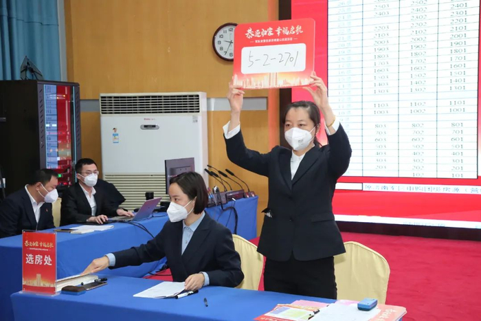 进入现场,会场标识牌、工作人员将会按照选房动线引导住户到候选区落座等候。选房开始后,主持人按照排序依次叫号,每人计时3分钟选房,选房一经确定,主席台大屏实时显示选房结果,住户移步手续办理区,签署认购协议、供用电协议、智能缴费服务协议,并加入业主群。